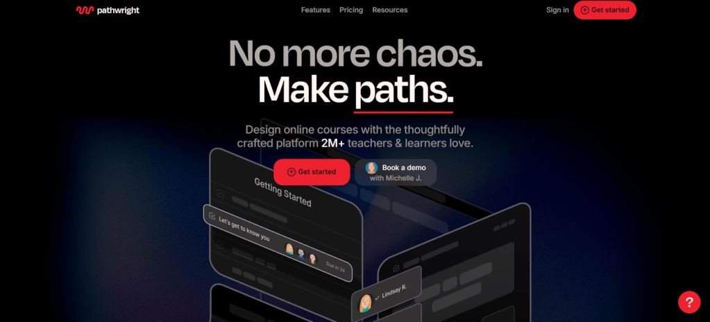 Pathwright is an online teaching platform where you can design step-by-step digital lessons called “paths.” These paths let you organise videos, readings, assignments, and quizzes all in one place, so students always know what to do next. Whether you’re teaching a live class or setting up self-paced learning, Pathwright makes it simple to organise content and guide students from start to finish.