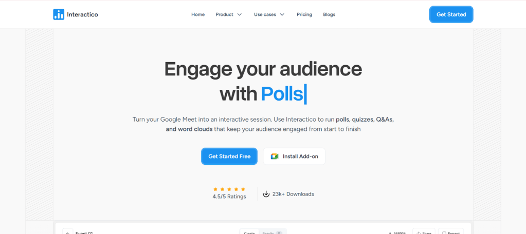 Interactico brings energy to online or hybrid classes. It lets you run live polls, Q&As, quizzes, and word clouds during your lessons. Students respond from their phones or laptops without installing any additional software. Teachers get instant feedback they can use right away.